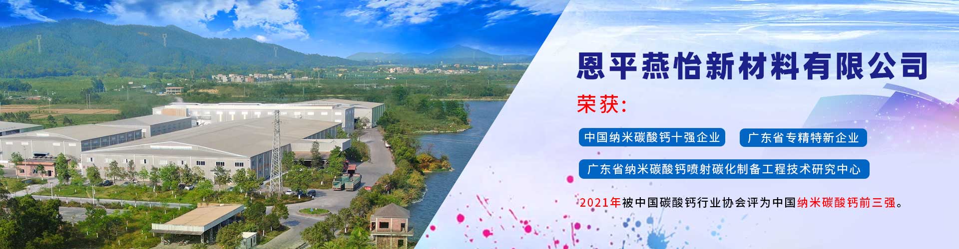 恩平燕怡新材料有限公司成立于2006年,位于廣東省江門恩平市。是一家專注于納米碳酸鈣產(chǎn)品研發(fā)、生產(chǎn)以及銷售服務(wù)的新材料企業(yè)。 公司榮獲 “高新技術(shù)企業(yè)”、 “清潔生產(chǎn)企業(yè)”、“廣東省納米碳酸鈣噴射碳化制備工程技術(shù)研究中心” 、 “中國納米碳酸鈣十強(qiáng)企業(yè)” 、 “廣東省專精特新企業(yè)”等稱號,并通過ISO9001:2015質(zhì)量管理體系認(rèn)證,產(chǎn)品質(zhì)量符合國家行業(yè)標(biāo)準(zhǔn)GB/T19590—2011納米碳酸鈣優(yōu)等品的要求。...